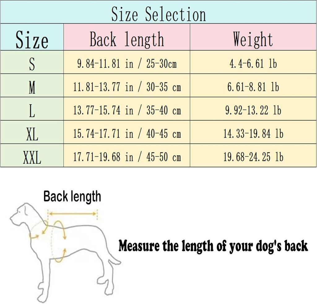 XXL: Back length 17.71-19.68 in, weight 20 - 24 lb